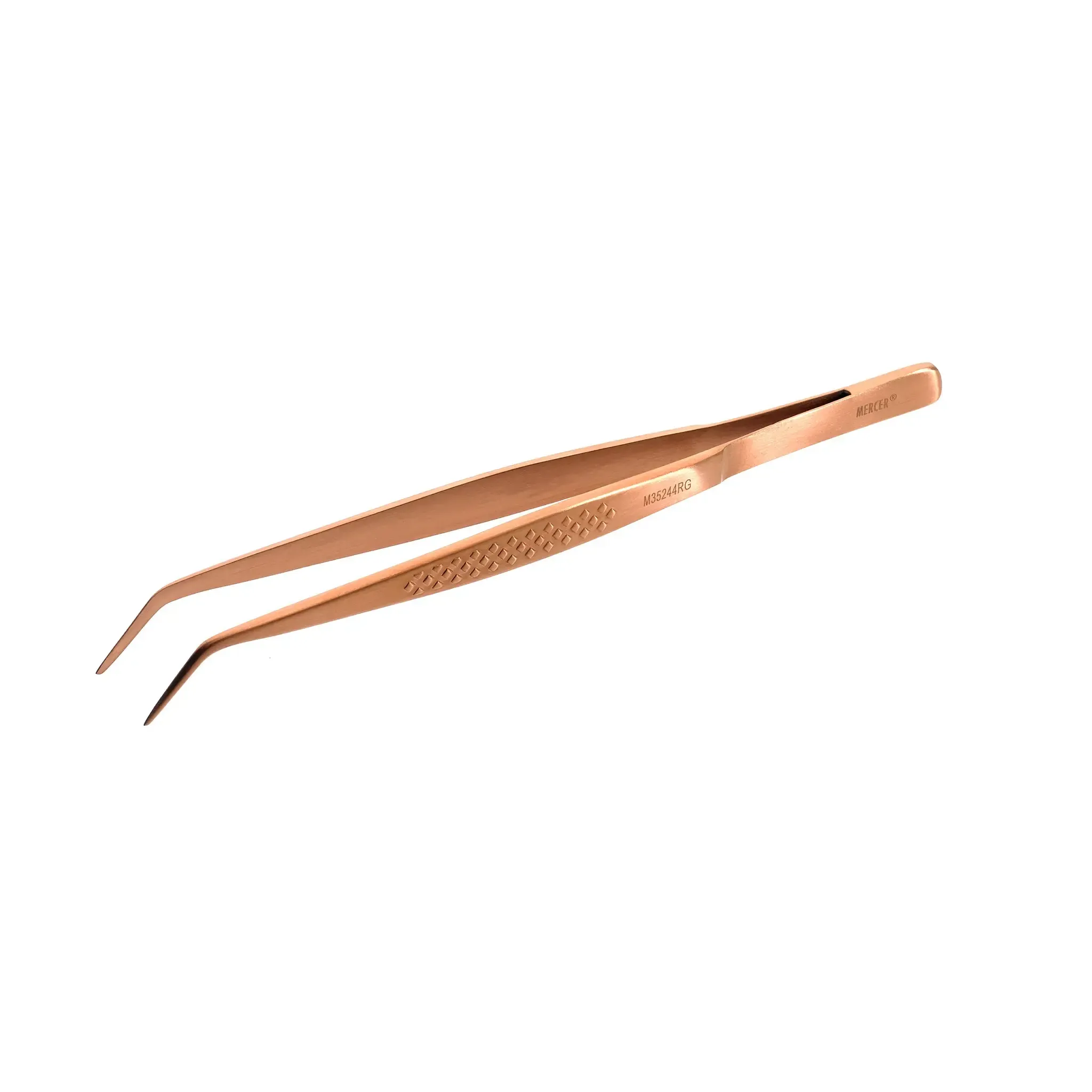 Optimize kitchen workflow with Mercer Culinary, M35244RG Tongs, Tweezer. These precision plus tongs are designed to enhance efficiency in a commercial restaurant setting. With a length of 6-1/8" and a fine point, curved tip style, these tongs provide precise control for delicate food items. The dual raised cross-hatch grips on the outside ensure stability, while the serrated tips on the inside offer a secure grip on food. Made with a hardened 18/8 stainless steel core and finished in elegant rose gold, these tongs are not only durable but also add a touch of sophistication to any kitchen. The satin finish further enhances their aesthetic appeal. Trust Mercer Culinary, a reputable vendor in the industry, to deliver quality and reliability. Upgrade your kitchen tools with these versatile tongs and experience improved performance and efficiency.
