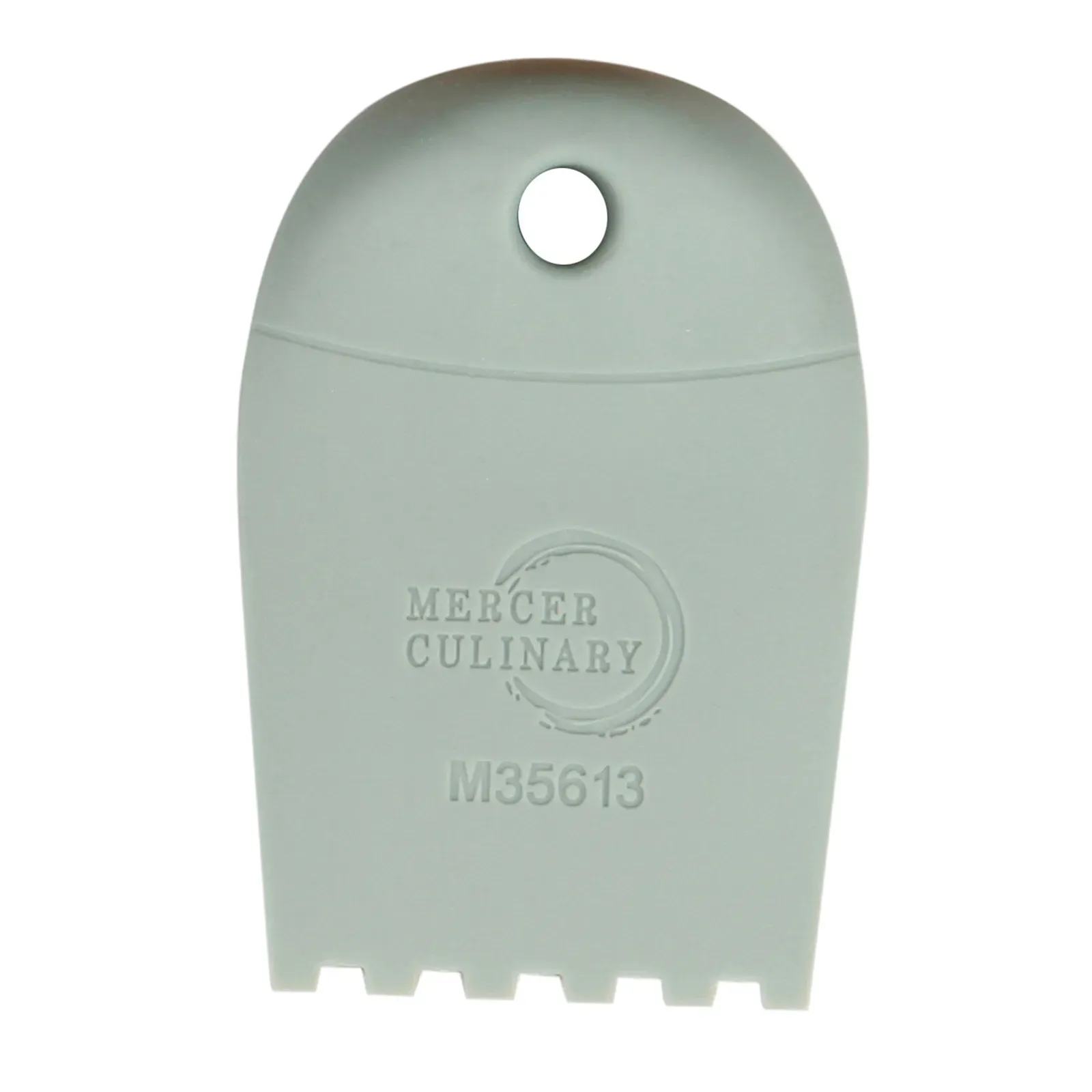 Maximize kitchen productivity with the Mercer Culinary, M35613, Plating Tool. This silicone plating wedge is designed to enhance your culinary creations in a commercial restaurant setting. With a 5mm square notch and an overall dimension of 3/4" x 2-1/2", this tool allows for precise and consistent plating. The 2-1/4" wide wedge tip and recessed thumb rest provide comfort and control while plating delicate dishes. Made from food-safe silicone, this tool is heat resistant up to 480F (250C), ensuring durability and safety in a high-temperature kitchen environment. The color-coded design allows for easy identification, streamlining your plating process. The hanging hole and tapered end offer convenient storage options. Dishwasher safe and packed in a case of 12, this plating tool is a must-have for any professional chef looking to elevate their culinary presentations.