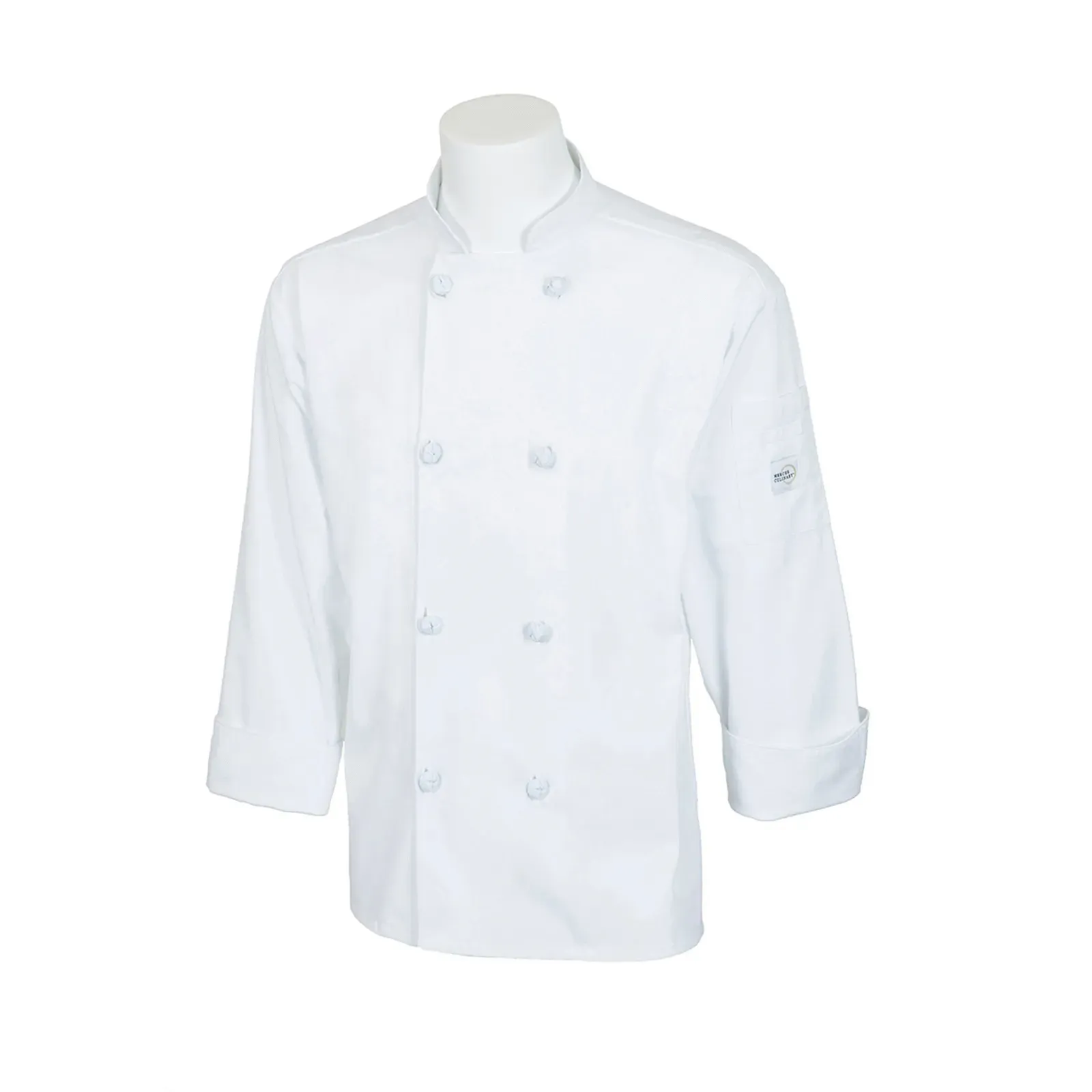 Optimize kitchen workflow with the Mercer Culinary, M60012WH2X Chef's Coat. This unisex jacket is designed to enhance efficiency and comfort in a commercial restaurant setting. With its 65/35 poly/cotton twill fabric, this chef's coat offers durability and breathability, ensuring long-lasting performance even in a fast-paced kitchen environment. The eight cloth knot buttons provide a secure closure, while the shoulder pocket offers convenient storage for essential tools. Whether you're a professional chef or a culinary enthusiast, this chef's coat from Mercer Culinary is a must-have for maintaining a polished and professional appearance. Elevate your culinary experience with the Mercer Culinary, M60012WH2X Chef's Coat and enjoy the perfect blend of style, functionality, and comfort.