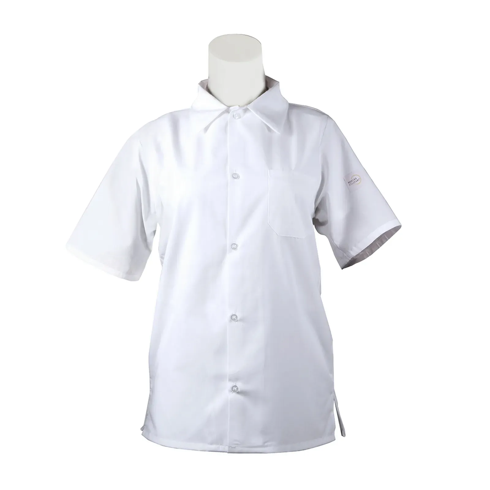 Maximize kitchen productivity with the Mercer Culinary, M60200WH6X Cook's Shirt. This unisex cook shirt is designed to enhance comfort and functionality in a commercial restaurant setting. With its traditional button closure, mesh back, and vented sides, this shirt allows for optimal airflow, keeping chefs cool and comfortable during long shifts. The chest pocket provides convenient storage for small essentials, ensuring quick access to tools or pens. Made from a durable blend of 65/35 poly/cotton poplin, this shirt is built to withstand the demands of a busy kitchen while maintaining a professional appearance. Elevate your team's performance and style with this high-quality cook shirt from Mercer Culinary.