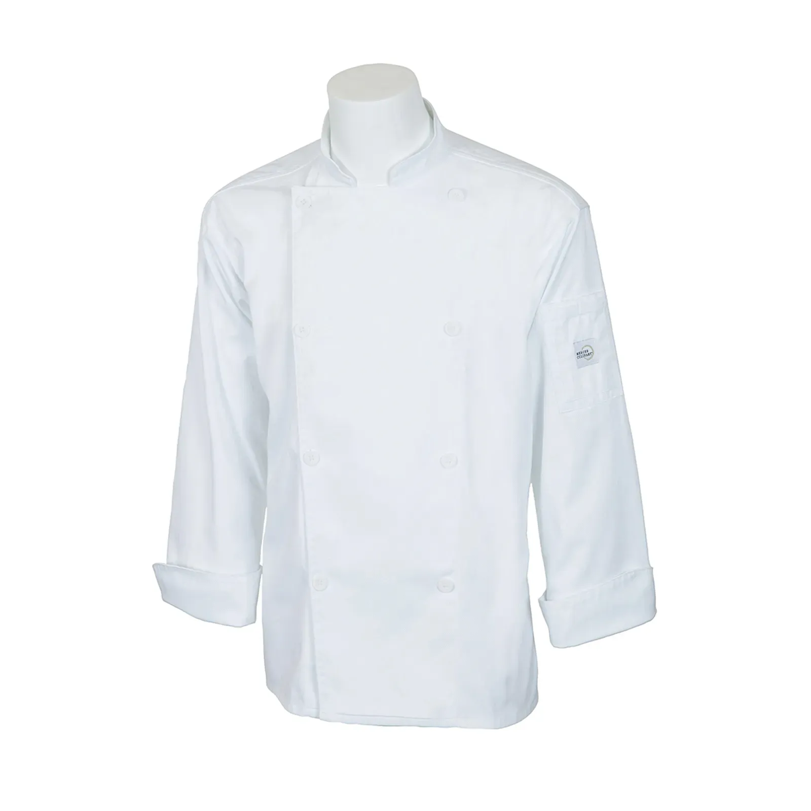 Enhance culinary precision with the Mercer Culinary, M61010WH5X, Chef's Coat. This unisex chef jacket is designed to meet the demands of a commercial restaurant setting. With its 60/40 cotton/poly blend, it offers both comfort and durability, ensuring that it can withstand the rigors of a busy kitchen. The jacket features eight traditional buttons, providing a classic and professional look. It also includes a utility shoulder pocket, allowing chefs to keep essential tools within easy reach. The side slits offer freedom of movement, ensuring that chefs can work efficiently and comfortably. Whether you're a seasoned chef or just starting out, the Mercer Culinary, M61010WH5X, Chef's Coat is a must-have for any commercial restaurant.