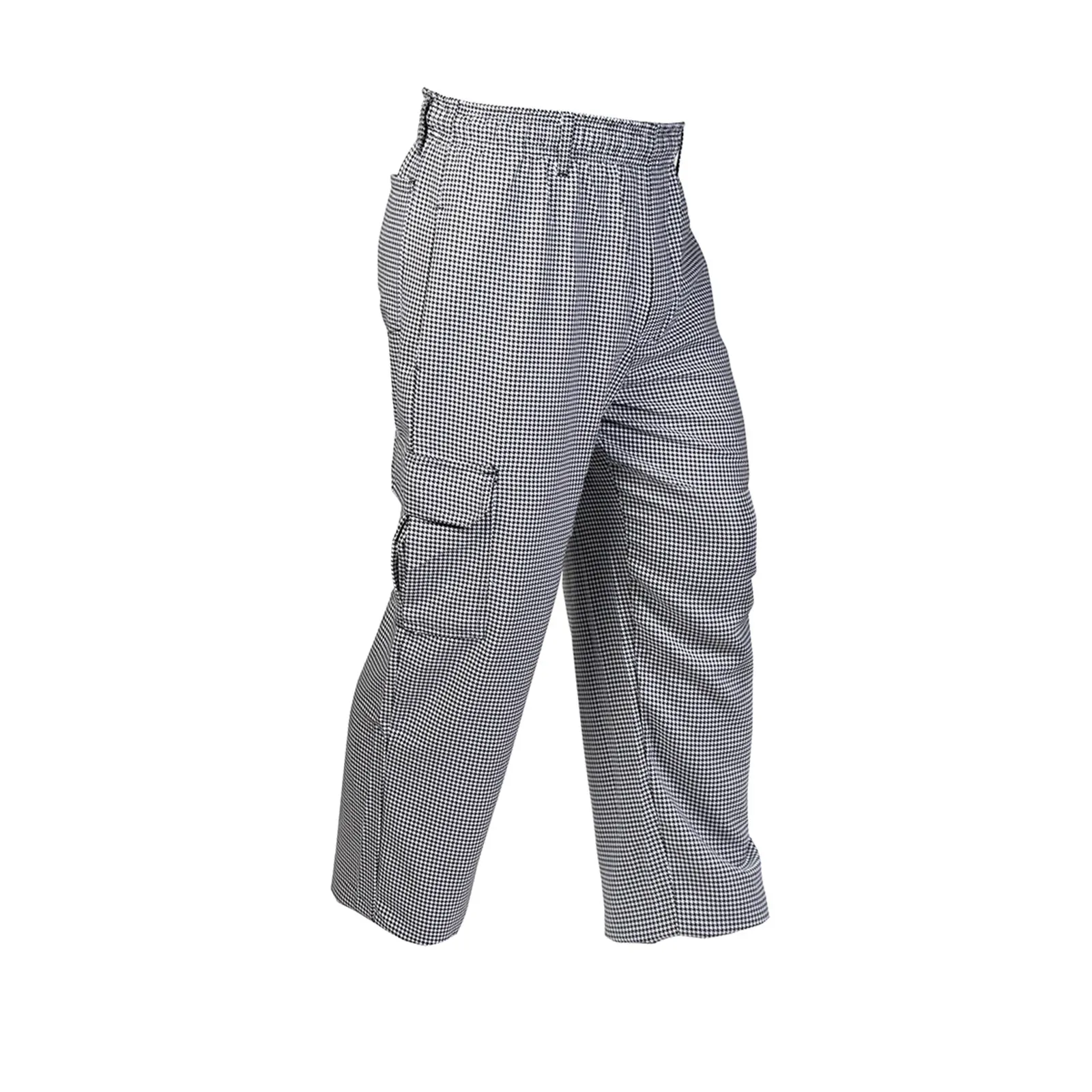 Optimize kitchen efficiency with Mercer Culinary, M61051HTXS Chef's Pants. These unisex cargo pants are designed to meet the demands of a busy commercial restaurant setting. The elastic waist and belt loops ensure a comfortable and secure fit, allowing chefs to move freely and focus on their tasks. With six pockets, including leg pockets with Velcro flaps, these pants provide ample storage space for essential tools and personal items. The finished cuffs add a professional touch, while the black and white houndstooth pattern adds a stylish flair. Made from a durable 65/35 yarn-dyed poly/cotton blend, these pants are built to withstand the rigors of a fast-paced kitchen. Whether you're a chef, line cook, or kitchen staff, these Mercer Culinary Chef's Pants are a must-have for anyone looking to enhance their performance and productivity in the restaurant industry.