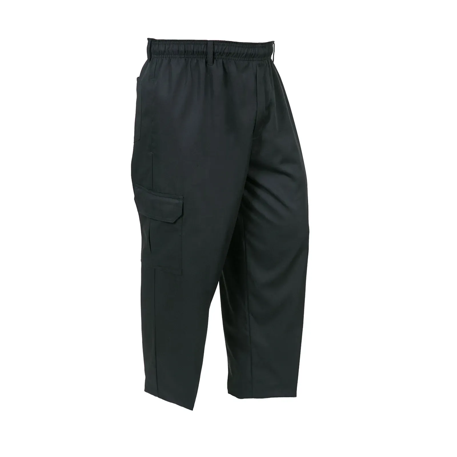 Elevate kitchen operations with Mercer Culinary, M61090BK3X Chef's Pants. Designed for commercial restaurant use, these Genesis Unisex Cargo Pants are a must-have for any professional chef. The elastic waist and belt loops ensure a comfortable and secure fit, allowing you to move freely in the kitchen. With six pockets, including leg pockets with Velcro flaps, you'll have plenty of storage space for your essentials. The black 65/35 poly/cotton twill fabric is durable and easy to clean, making these pants perfect for the fast-paced restaurant environment. Finished cuffs add a polished touch to your appearance. Whether you're a chef, line cook, or kitchen staff, these Chef's Pants are the ideal choice for style, functionality, and durability in a commercial restaurant setting.