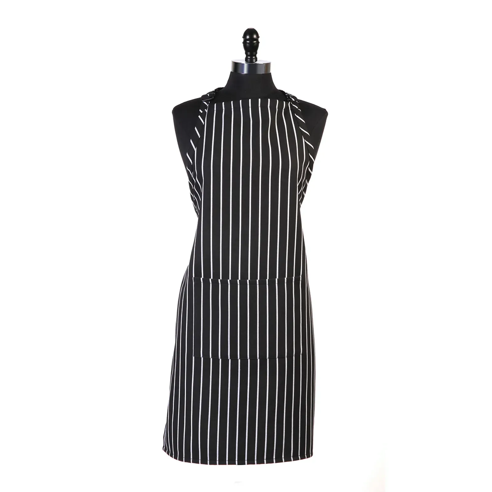 Optimize kitchen workflow with the Mercer Culinary, M61110BCS, Bib Apron. This high-quality apron from Mercer Culinary is designed to enhance efficiency and functionality in a commercial restaurant setting. Made with a durable 65/35 poly/cotton twill fabric, this bib apron is built to withstand the demands of a busy kitchen. The adjustable neck strip ensures a comfortable fit for all staff members, while the black chalk stripe adds a touch of style. With a convenient pocket, this apron allows for easy access to essential tools and utensils, keeping them within reach at all times. The Genesis Bib Apron measures 33" x 23", providing ample coverage and protection. Upgrade your restaurant's uniform with the Mercer Culinary, M61110BCS, Bib Apron.