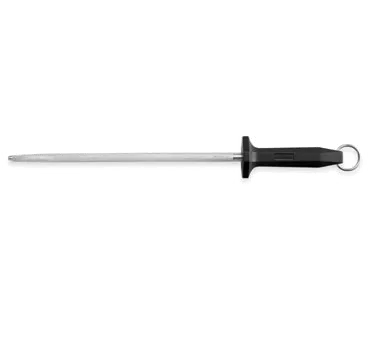 Master Culinary Tasks with the Mundial, 3306-12, Knife, Sharpening Steel. This premium sharpening steel is a must-have tool for any commercial restaurant. With its 12" round/regular cut, it is perfect for maintaining the sharpness of your knives, ensuring precise and efficient cutting every time. The black poly handle with a hanging ring provides a comfortable grip and easy storage, allowing you to keep it within reach at all times. NSF certified, this sharpening steel meets the highest standards of safety and hygiene in a professional kitchen. Trust Mundial, a renowned vendor in the industry, to deliver exceptional quality and durability. Elevate your culinary skills and keep your knives in top condition with the Mundial, 3306-12, Knife, Sharpening Steel.