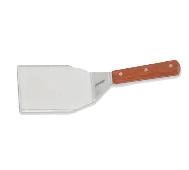 Introducing the Mundial, 4687M, Turner, Solid, Stainless Steel, a must-have tool for mastering culinary tasks efficiently in any commercial restaurant. This steak and burger turner is designed to handle heavy-duty use, making it perfect for busy kitchens. With its 5" x 4" beveled edge stainless steel blade, this turner effortlessly flips and turns steaks, burgers, and other grilled delicacies. The wood handle provides a comfortable grip, ensuring precision and control while cooking. The Mundial, 4687M, Turner is not only durable and reliable but also easy to clean, making it a practical choice for any professional chef. Elevate your cooking experience with this high-quality turner and impress your customers with perfectly cooked dishes every time.