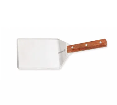 Elevate Kitchen Mastery Experience with Mundial, 4688M, Turner, Solid, Stainless Steel. This heavy-duty steak and hamburger turner is a must-have tool for any commercial restaurant. With its beveled edge and stainless steel blade, it effortlessly flips and turns meat, ensuring even cooking and perfect presentation. The 6" x 5" size is ideal for handling large cuts of meat, while the wood handle provides a comfortable grip and heat resistance. Its durability and quality make it a reliable choice for busy kitchens, while its sleek design adds a touch of professionalism. Whether you're grilling steaks or flipping burgers, this Mundial turner will help you achieve culinary perfection every time.