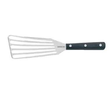 Streamline Culinary Workflow Effectively with the Mundial, 4690BW, Turner, Slotted, Stainless Steel. This high-quality fish turner is a must-have tool for any commercial restaurant. Its stainless steel blade ensures durability and longevity, while the slotted design allows for easy draining of excess liquids. The black wood handle provides a comfortable grip, reducing fatigue during extended use. Whether you're flipping delicate fish fillets or turning burgers on the grill, this turner is up to the task. Its sleek design and reliable performance make it a valuable addition to any professional kitchen. Upgrade your culinary arsenal with this essential tool and experience enhanced efficiency in your restaurant.