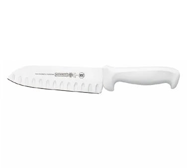 Streamline Culinary Operations with the Mundial W5604-7GE Asian Knife. This high-quality knife is designed to meet the demands of a busy commercial restaurant kitchen. The 7" granton edge blade is made from high carbon steel, ensuring durability and resistance to staining. The blade is also treated with sanitized antimicrobial protection, providing an extra layer of cleanliness and safety. The molded white polypropylene handle offers a comfortable grip, allowing for precise and controlled cutting. With its NSF certification, this knife meets the highest standards of food safety and sanitation. Upgrade your kitchen with this versatile and reliable knife that will enhance your culinary creations.