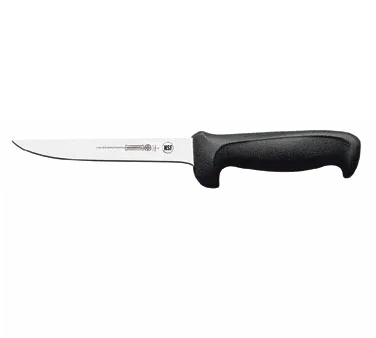 Enhance Food Preparation Efficiency with the Mundial, 5609-6, Knife, Boning. This boning knife is a must-have tool for any commercial restaurant. With its wide stiff blade made of high carbon/no stain steel, it effortlessly glides through meat, making it perfect for deboning and trimming. The molded black polypropylene handle provides a comfortable grip, allowing for precise control and reducing hand fatigue during long hours of use. Additionally, this knife is treated with sanitized antimicrobial protection, ensuring a hygienic and safe food preparation environment. Whether you're a professional chef or a restaurant owner, this boning knife will significantly improve your food preparation efficiency, saving you time and effort. Trust Mundial, a reputable vendor in the industry, to deliver a high-quality knife that meets the demands of a commercial restaurant.