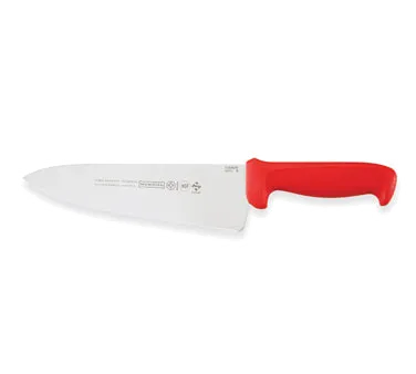 Streamline Culinary Workflow Effectively with the Mundial R5610-8 Chef Knife. This high-quality knife is designed to enhance efficiency in commercial restaurant kitchens. With its 8" high carbon/no stain blade, this knife effortlessly cuts through a variety of ingredients, making it a versatile tool for any chef. The 2-1/2" wide handle provides a comfortable grip, allowing for precise control and reducing hand fatigue during long hours of use. The molded red polypropylene handle is not only durable but also treated with sanitized antimicrobial protection, ensuring a hygienic cooking environment. The Mundial R5610-8 Chef Knife is NSF certified, guaranteeing its safety and quality. Upgrade your kitchen with this reliable and efficient chef knife and experience the difference it makes in your culinary creations.