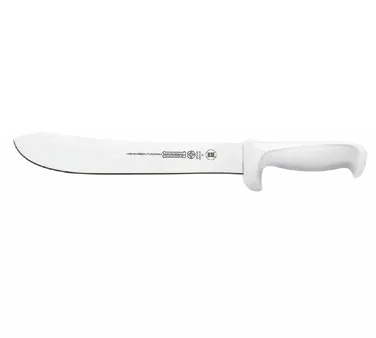 Master Culinary Tasks with the Mundial W5625-10 Butcher Knife. This high-quality knife is designed for commercial restaurant use, making it the perfect tool for professional chefs and butchers. The 10-inch high carbon/no stain blade ensures exceptional cutting performance and durability, allowing you to effortlessly slice through meat and other ingredients. The molded white polypropylene handle provides a comfortable grip, reducing fatigue during extended use. Additionally, the handle is treated with sanitized antimicrobial protection, ensuring a hygienic and safe food preparation environment. The Mundial W5625-10 Butcher Knife is NSF certified, guaranteeing its compliance with strict food safety standards. Upgrade your culinary arsenal with this reliable and versatile butcher knife.