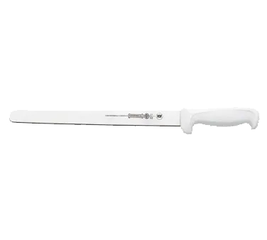 Streamline Food Preparation Dynamics with the Mundial W5627-12 Slicer Knife. Designed specifically for commercial restaurant use, this knife is a game-changer in the kitchen. With a 12" high carbon/no stain blade, it effortlessly slices through meats, vegetables, and more, making food preparation a breeze. The 1-1/8" wide handle provides a comfortable grip, ensuring precision and control with every slice. The molded white polypropylene handle is not only durable but also treated with sanitized antimicrobial protection, keeping your kitchen clean and hygienic. The knife is NSF certified, guaranteeing its quality and safety. Upgrade your culinary arsenal with the Mundial W5627-12 Slicer Knife and experience the efficiency and reliability it brings to your restaurant's food preparation process.