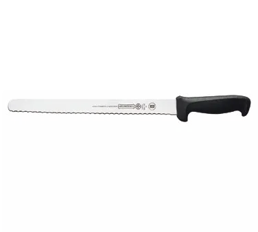 Streamline Culinary Operations Effectively with the Mundial 5627-12E Slicer Knife. This high-quality knife is designed to meet the demands of a commercial restaurant setting. With its 12" serrated edge and 1-1/8" wide handle, it effortlessly slices through a variety of ingredients, saving you time and effort in the kitchen. The blade is made from high carbon steel, ensuring durability and resistance to staining. The molded black polypropylene handle provides a comfortable grip, allowing for precise control while cutting. Additionally, the handle is treated with sanitized antimicrobial protection, keeping the knife hygienic and safe to use. Trust Mundial, a reputable vendor in the culinary industry, to deliver a reliable and efficient slicing solution for your restaurant.