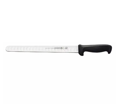 Master Culinary Tasks with the Mundial 5627-12GE Slicer Knife. This high-quality knife is designed for commercial restaurant use, making it the perfect tool for slicing and dicing ingredients with precision and ease. The 12" hollow edge blade is made from high carbon steel, ensuring durability and resistance to staining. The blade is also treated with sanitized antimicrobial protection, keeping it clean and safe for use in a busy kitchen environment. The molded black polypropylene handle provides a comfortable grip, allowing for extended use without discomfort. With a width of 1-1/8" at the handle, this knife offers excellent control and maneuverability. Trust Mundial, a trusted name in the industry, to deliver exceptional quality and performance. Upgrade your kitchen arsenal with the Mundial 5627-12GE Slicer Knife and experience the difference it makes in your culinary endeavors.