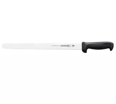 Enhance Culinary Mastery Seamlessly with the Mundial, 5627-14, Knife, Slicer. This high-quality slicer knife is a must-have tool for any commercial restaurant. With its 14" length and 1-1/8" rounded tip, it effortlessly slices through meats, vegetables, and more. The wide handle provides a comfortable grip, allowing for precise control and reducing hand fatigue during long hours of use. The blade is made from high carbon steel, ensuring durability and resistance to staining. The molded black polypropylene handle is treated with sanitized antimicrobial protection, keeping it clean and safe for use in a professional kitchen. This knife is NSF certified, meeting the highest standards of quality and safety. Upgrade your restaurant's cutting capabilities with the Mundial, 5627-14, Knife, Slicer.