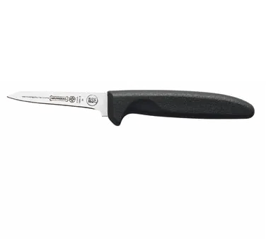 Elevate Kitchen Operations with Mundial's 5660-3 1/4 Paring Knife. Designed specifically for commercial restaurant use, this knife is a must-have tool for any professional chef. The X-large handle provides a comfortable grip, allowing for precise control and reducing hand fatigue during long hours of food preparation. The slant point and high carbon/no stain blade ensure exceptional sharpness and durability, making it perfect for intricate tasks like peeling, trimming, and boning. The molded black polypropylene handle is treated with sanitized antimicrobial protection, ensuring a hygienic and safe cooking environment. Trust Mundial, a trusted name in the industry, to deliver a knife that will enhance your kitchen's efficiency and productivity.
