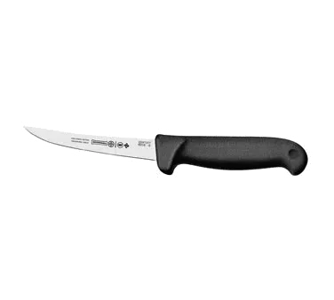 Upgrade Kitchen Equipment with the Mundial, 6316-5, Knife, Boning. This high-quality boning knife is a must-have for any commercial restaurant. With its curved, narrow, high-carbon stainless steel blade, it effortlessly glides through meat, making it perfect for deboning and trimming. The double injection molded black polypropylene handle provides a comfortable and secure grip, ensuring precision and control during use. Additionally, the handle is treated with sanitized antimicrobial protection, keeping it clean and hygienic even during busy kitchen hours. The knife is NSF certified, guaranteeing its safety and suitability for commercial use. Upgrade your kitchen equipment today with the Mundial, 6316-5, Knife, Boning and experience the difference it makes in your restaurant's efficiency and productivity.