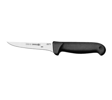Enhance Culinary Mastery Seamlessly with the Mundial, 6318-5, Knife, Boning. This high-quality boning knife is a must-have tool for any commercial restaurant. Its straight, narrow, high-carbon stainless steel blade allows for precise and effortless deboning of meat, making it ideal for professional chefs and butchers. The double injection molded black polypropylene handle provides a comfortable and secure grip, ensuring safety and control during use. Additionally, the handle is treated with sanitized antimicrobial protection, keeping the knife clean and hygienic in a busy kitchen environment. With NSF certification, this knife meets the highest standards of quality and safety. Invest in the Mundial, 6318-5, Knife, Boning and elevate your culinary skills to new heights.