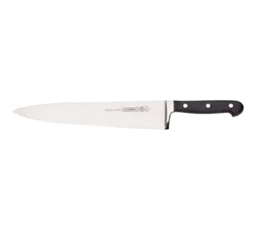 Streamline Food Preparation Dynamics with the Mundial BP5110-10 Chef Knife. This fully forged high carbon/no stain blade is designed to meet the demands of a busy commercial restaurant kitchen. With a 10" length, this knife offers exceptional precision and control, allowing chefs to effortlessly slice, dice, and chop ingredients with ease. The black polyacetal handle provides a comfortable grip, reducing fatigue during extended use. NSF certified, this knife meets the highest standards of safety and sanitation. Whether you're preparing ingredients for a signature dish or creating culinary masterpieces, the Mundial BP5110-10 Chef Knife is a must-have tool for any professional chef. Upgrade your kitchen arsenal and experience the difference in performance and quality with Mundial.