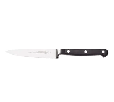 Transform Culinary Equipment Dynamics with the Mundial BP5111-4 Paring Knife. This fully forged high carbon/no stain blade is designed to meet the rigorous demands of a commercial restaurant kitchen. With a 4" length, this knife is perfect for precision tasks such as peeling, trimming, and slicing small fruits and vegetables. The black polyacetal handle provides a comfortable grip, ensuring optimal control and reducing hand fatigue during extended use. NSF certified, this knife meets the highest standards of safety and sanitation. Upgrade your culinary arsenal with this essential tool and experience the difference it makes in your restaurant's efficiency and productivity.