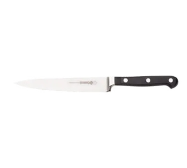 Transform Culinary Equipment Dynamics with the Mundial BP5111-6 Utility Knife. This versatile knife is a must-have for any commercial restaurant. With its fully forged high carbon/no stain blade, it delivers exceptional durability and precision cutting. The 6" blade is perfect for a wide range of tasks, from slicing fruits and vegetables to trimming meats. The black polyacetal handle provides a comfortable grip, ensuring safety and control during use. NSF certified, this knife meets the highest standards of quality and hygiene. Packaged in a sleek gift box, it is also an excellent choice for gifting to fellow chefs or culinary enthusiasts. Upgrade your culinary arsenal and experience the difference with Mundial.
