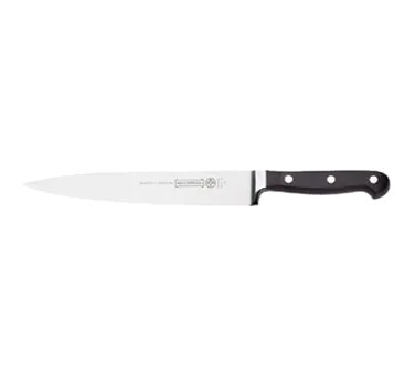 Enhance Food Preparation Efficiency with the Mundial BP5111-8 Slicer Knife. This fully forged high carbon/no stain blade is designed to meet the demands of a commercial restaurant setting. The 8-inch blade allows for precise slicing of meats, vegetables, and fruits, ensuring consistent and professional results every time. The black polyacetal handle provides a comfortable grip, reducing fatigue during extended use. NSF certified, this knife meets the highest standards of safety and sanitation. Upgrade your kitchen with this essential slicing tool and experience enhanced efficiency in your food preparation.