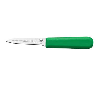 Streamline Food Preparation Dynamics with the Mundial G5601-3 1/4 Paring Knife. This chef-style knife is designed for commercial restaurant use, making it an essential tool for any professional kitchen. The high carbon/no stain blade ensures durability and long-lasting performance, while the green polypropylene handle provides a comfortable grip during extended use. The knife is treated with sanitized antimicrobial protection, ensuring a hygienic food preparation environment. With its NSF certification, you can trust that this knife meets the highest standards of safety and sanitation. Each case contains 24 knives, allowing you to stock up and ensure you always have a sharp, reliable knife on hand. Whether you're peeling fruits and vegetables or precision cutting delicate ingredients, the Mundial G5601-3 1/4 Paring Knife is the perfect tool to enhance your food preparation efficiency and deliver exceptional culinary results.