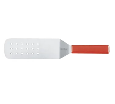 Enhance Kitchen Operations Precision with the Mundial R5681 Turner. This high-quality turner is designed to meet the demands of a commercial restaurant setting. With its perforated stainless steel blade, it allows for efficient draining and flipping of food items. The 8" x 3" size is perfect for handling various ingredients, while the molded red polypropylene handle provides a comfortable grip and ensures durability. The turner is also treated with sanitized antimicrobial protection, making it safe and hygienic for food preparation. NSF certified, this turner meets the highest standards of quality and safety. Whether you're flipping burgers on the grill or serving delicate pastries, the Mundial R5681 Turner is a reliable tool that will enhance your kitchen operations and deliver precise results every time.