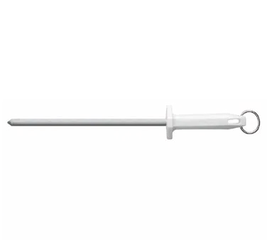 Master Culinary Tasks with the Mundial, W3303-10 Knife Sharpening Steel. This essential tool is designed to keep your knives sharp and ready for any culinary challenge in a commercial restaurant setting. With its 10" round/regular cut, this sharpening steel is perfect for maintaining the razor-sharp edge of your knives, ensuring precise and efficient cuts every time. The white polypropylene handle provides a comfortable grip, allowing for extended use without fatigue. Treated with sanitized antimicrobial protection, this sharpening steel guarantees a hygienic and safe kitchen environment. The hanging ring (snap) allows for easy storage and accessibility, keeping your workspace organized and clutter-free. NSF certified, this sharpening steel meets the highest standards of quality and safety. Don't compromise on the sharpness of your knives. Invest in the Mundial, W3303-10 Knife Sharpening Steel and elevate your culinary skills to new heights.