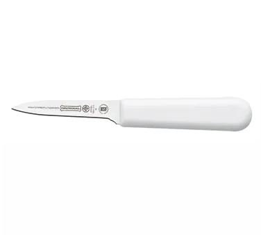 Upgrade Kitchen Equipment with the Mundial W5601-3 1/4 Paring Knife. This chef-style knife is designed for commercial restaurant use, making it the perfect addition to any professional kitchen. The high carbon/no stain blade ensures durability and long-lasting performance, while the molded white polypropylene handle provides a comfortable grip for extended use. The knife is also treated with sanitized antimicrobial protection, ensuring a hygienic and safe food preparation environment. With its NSF certification, you can trust that this knife meets the highest standards of quality and safety. Each case contains 24 knives, allowing you to stock up and equip your kitchen staff with reliable and efficient tools. Upgrade your kitchen today with the Mundial W5601-3 1/4 Paring Knife and experience the difference in performance and quality.