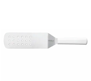 Elevate Kitchen Operations with Mundial, W5681, Turner, Perforated, Stainless Steel. This high-quality turner is a must-have tool for any commercial restaurant. With its 8" x 3" perforated stainless steel blade, it allows for easy flipping and draining of food items. The molded white polypropylene handle provides a comfortable grip, ensuring precise control while cooking. What sets this turner apart is its sanitized antimicrobial protection, which helps maintain a hygienic kitchen environment. NSF certified, it meets the highest standards of safety and cleanliness. Whether you're flipping burgers on the grill or serving delicate pastries, this turner is designed to withstand the demands of a commercial kitchen. Trust Mundial for reliable, durable, and efficient kitchen tools.