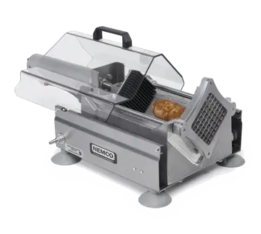 Optimize restaurant workflow with the Nemco, 56455-2, French Fry Cutter. This monster airmatic frykutter is designed to cut extra large potatoes with ease, making it perfect for high-volume commercial restaurant use. With a 3/8" cut and a pneumatic air cylinder with built-in air-piloted cushions, this fry cutter can effortlessly slice through 720 potatoes per hour, saving you valuable time and effort. Not only can it handle potatoes, but it can also cut soft vegetables, expanding its versatility in the kitchen. The clear polycarbonate guard ensures safety while the cast aluminum and stainless steel construction guarantee durability. The suction cup feet provide stability during operation, and it is NSF certified for added peace of mind. Made in the USA by Nemco, this French fry cutter is a reliable and authentic choice for any commercial kitchen.