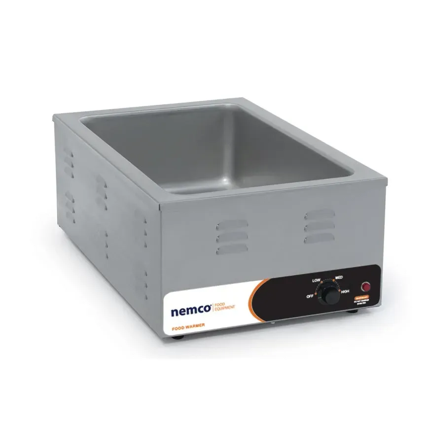 Elevate Your Restaurant Standards with the Nemco, 6055A-CW, Food Pan Warmer/Cooker, Countertop. This versatile countertop cooker/warmer from Nemco is designed to meet the demands of a commercial restaurant setting. With its wet operation and the ability to accept a 12" x 20" full-size pan or fractional size pans, this unit offers flexibility in food preparation. The adjustable thermostat allows for precise temperature control, while the cycling indicator pilot light ensures easy monitoring. Made with stainless steel construction, this cooker/warmer is durable and easy to clean. With 1500 watts of power, it provides efficient heating for your dishes. The Nemco 6055A-CW is also cETLus and NSF certified, guaranteeing its safety and quality. Upgrade your restaurant's kitchen with this reliable and efficient countertop cooker/warmer from Nemco.