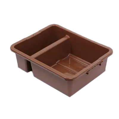 Streamline daily operations with the Royal Industries DIN BTD04 Bus Box/Tub. This high-quality bus box is designed to meet the demands of a busy commercial restaurant. With its 2-compartment design and generous dimensions of 21-1/4"L x 17-1/4"W x 7" deep, it offers ample space for storing and transporting dishes, utensils, and other items. The ergonomic handles make it easy to carry, while the reinforced rims ensure durability and longevity. Made from scratch-resistant, high-density polyethylene, this bus box is built to withstand the rigors of a bustling kitchen. It is NSF 2 certified, guaranteeing its safety for food contact, and is also BPA-free. The brown color adds a touch of sophistication to any restaurant setting. Trust Royal Industries, a reputable vendor in the industry, to provide you with a reliable and practical solution for your restaurant needs.