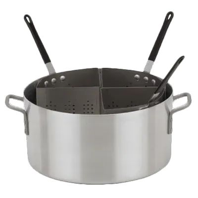 Optimize processes with the Royal Industries, ROY 203, Pasta Pot. This commercial-grade pasta cooker is designed to streamline your restaurant's operations and enhance efficiency. With a 20 qt. pot and four stainless steel 3 qt. inserts, this pasta pot allows you to cook large quantities of pasta simultaneously, saving you valuable time and effort. The stay cool handles ensure safe and comfortable handling, even when the pot is hot. Made of durable aluminum, this pot is built to withstand the demands of a busy commercial kitchen. Its compact size, measuring 18" in diameter and 6-7/8" in height, makes it easy to store and transport. Additionally, this pasta pot is packed by Royal Industries, a trusted name in the industry, ensuring its authenticity and quality. Upgrade your restaurant's pasta cooking capabilities with the Royal Industries, ROY 203, Pasta Pot.