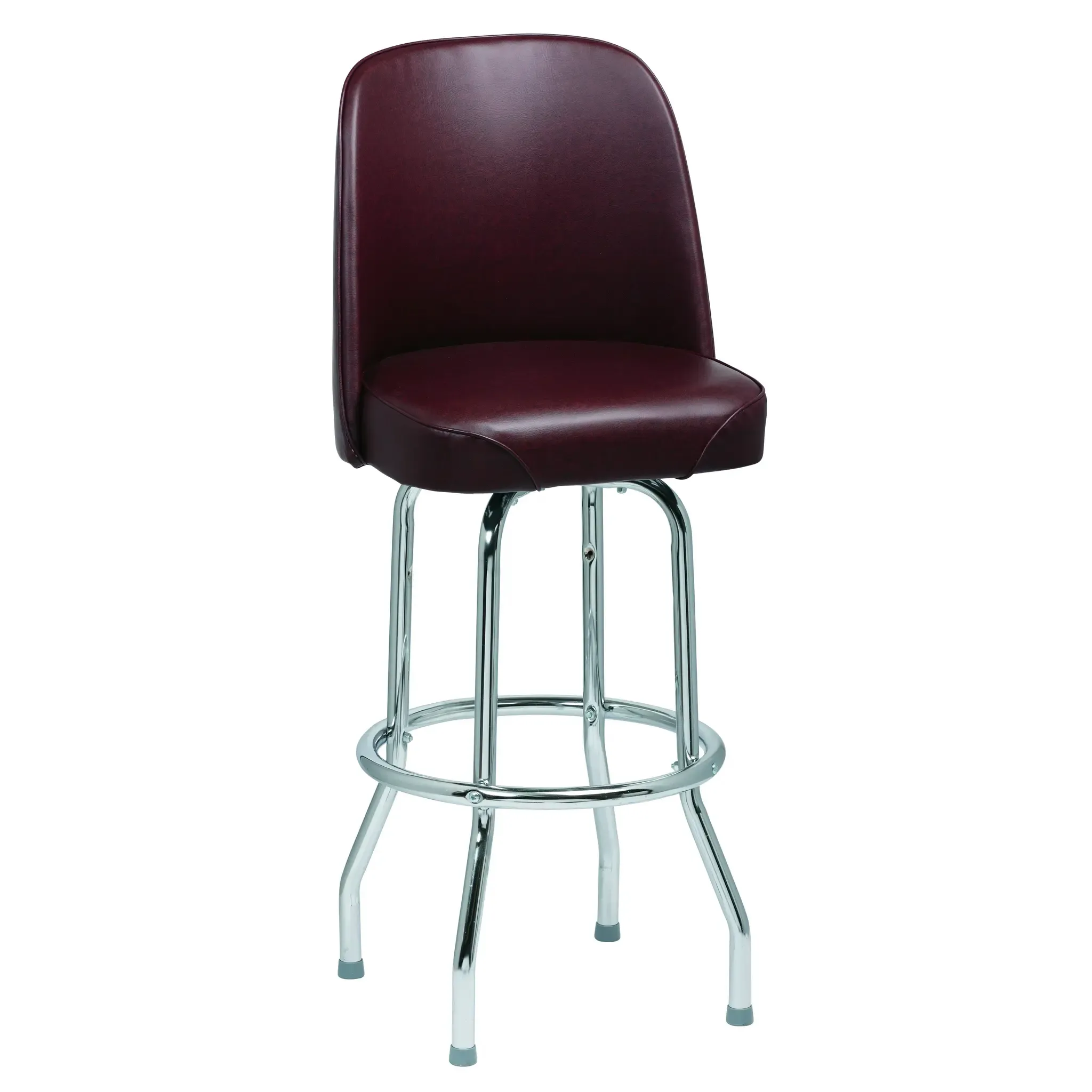Streamline daily operations with the Royal Industries, ROY 7721 BRN Bar Stool. Designed for commercial restaurant use, this high-back bucket bar stool offers both comfort and durability. The heavy foam padded waterfall seat ensures maximum comfort for your guests, while the t-nut construction and chrome frame with a single ring provide exceptional stability. The stool features a fabric back in brown vinyl, adding a touch of elegance to your establishment. With its three heavy-duty ball bearing swivel and plastic glides, this bar stool allows for easy movement and protects your floors from scratches. The stool comes knocked down and is easy to assemble. Additionally, it meets California's safety standards, ensuring the well-being of your customers. Enhance your restaurant's ambiance and provide your guests with a comfortable seating option with the Royal Industries Bar Stool.