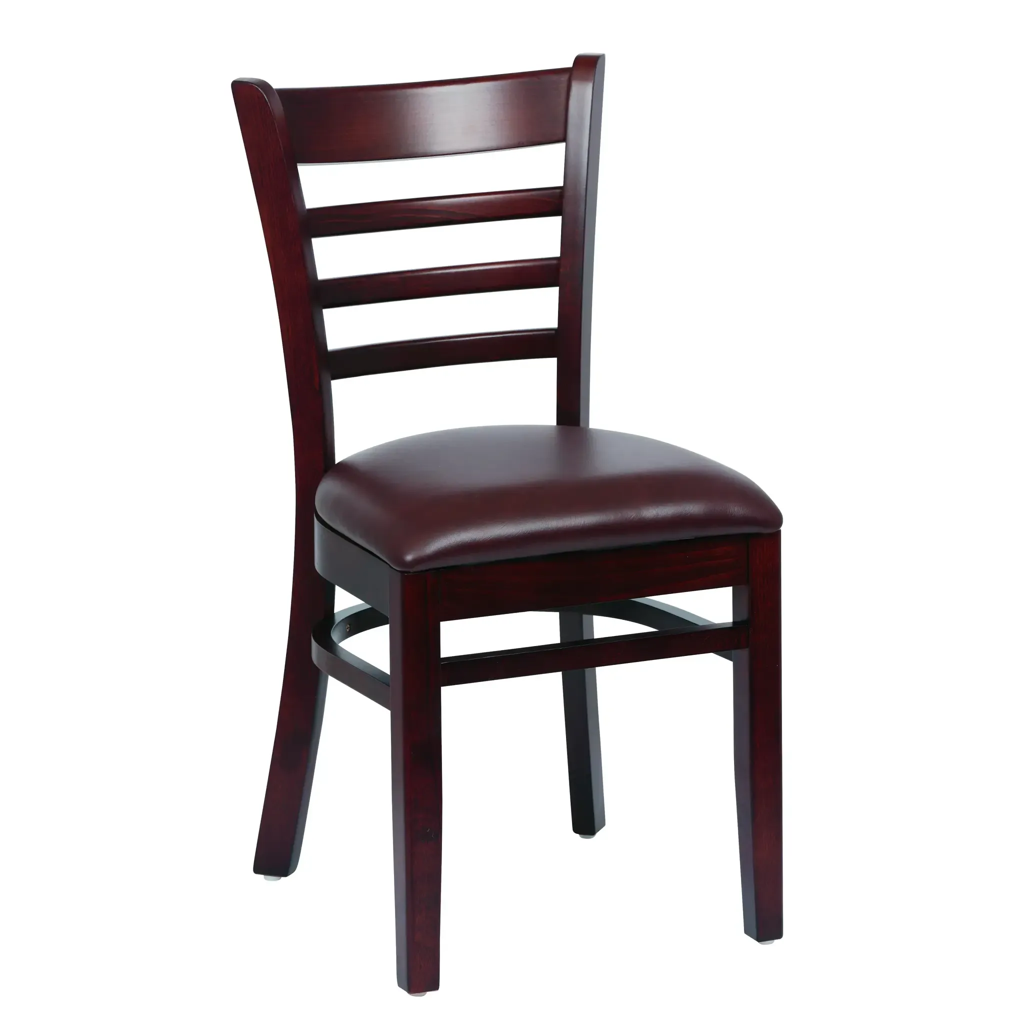 Improve dynamics with the Royal Industries ROY 8001 W BRN Chair. Designed for commercial restaurant use, this side chair enhances the ambiance of any dining space. The ladder back design adds a touch of elegance, while the upholstered brown vinyl cushion seat ensures comfort for patrons. Crafted from European Beachwood with a walnut finish, this chair exudes durability and sophistication. Each case contains two chairs, making it easy to furnish your restaurant with style. The Royal Industries ROY 8001 W BRN Chair is packed by Royal Industries, a trusted name in the industry. With a focus on quality and functionality, this chair is perfect for busy restaurant environments. Plus, it meets California's safety standards, so you can have peace of mind. Elevate your restaurant's seating with this exceptional side chair.