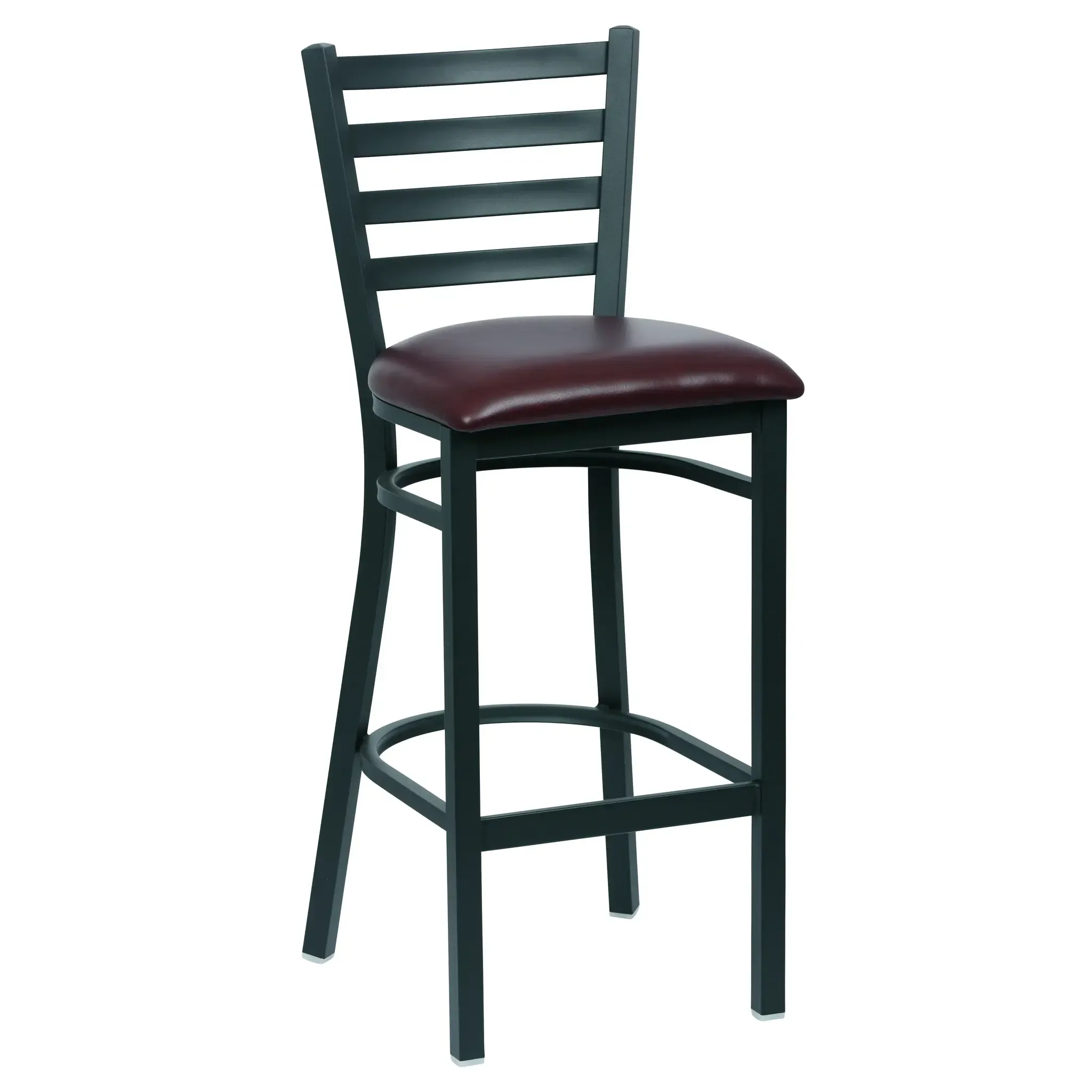 Ensure effective utilization with the Royal Industries, ROY 9002 BRN Bar Stool. Designed specifically for commercial restaurant use, this bar stool combines style and functionality to enhance any dining space. The ladder back design provides excellent support and comfort, while the upholstered brown vinyl cushion seat adds a touch of elegance. The metal frame with a matte black finish ensures durability and long-lasting performance, making it perfect for high-traffic areas. The nylon foot prevents scratches on the floor, maintaining the pristine condition of your establishment. With a compact size of 17"L x 16-1/2"W x 43-3/8"H, this bar stool is space-efficient and can be easily stored when not in use. Trust in the quality and reliability of Royal Industries to elevate your restaurant's seating experience.