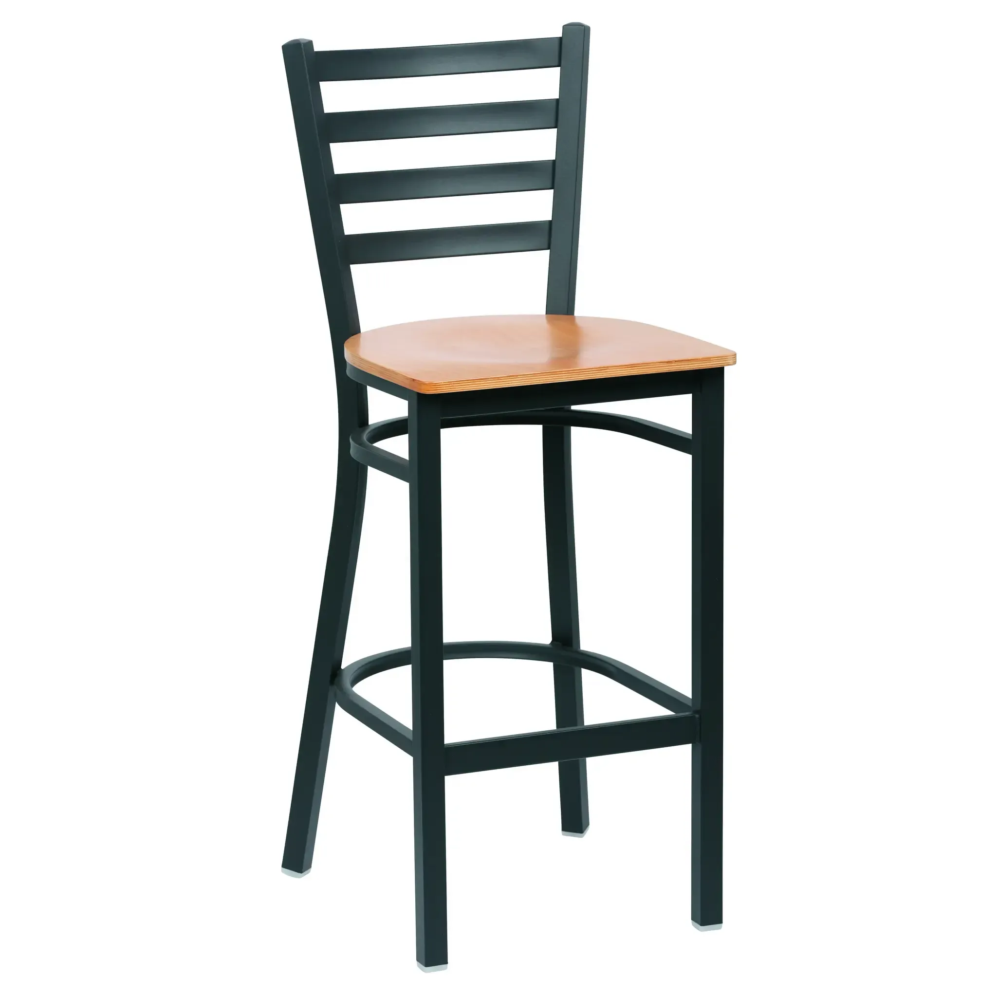 Improve dynamics with the Royal Industries, ROY 9002 N, Bar Stool, Indoor. This commercial-grade bar stool is designed to enhance the ambiance of any restaurant setting. With its ladder back design and natural finish wood saddle seat, it exudes a classic and timeless appeal. The metal frame with a matte black finish adds durability and stability, making it perfect for high-traffic areas. The nylon foot ensures that your floors remain scratch-free. This bar stool is packed by Royal Industries, a trusted name in the industry, and meets all safety standards. It comes with a warning label for California residents due to the presence of Bisphenol A (BPA). With its sleek design and comfortable seating, this bar stool is an excellent addition to any commercial restaurant. Elevate your dining experience with the Royal Industries, ROY 9002 N, Bar Stool, Indoor.