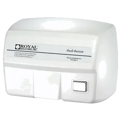 Simplify restaurant processes with the Royal Industries, ROY DRY 2200ES Hand Dryer. This wall-mounted hand dryer is designed to enhance efficiency and hygiene in commercial restaurant settings. With its adjustable drying cycle timer of 20-55 seconds, you can customize the drying time to suit your needs. The push-button operation ensures ease of use for both staff and customers. The safety power cut-off feature adds an extra layer of protection, while the painted cast aluminum construction ensures durability and longevity. This hand dryer is UL and CSA certified, guaranteeing its quality and safety. It comes with mounting screws, a template, and a wiring diagram for easy installation. Measuring 12-3/4"L x 8-3/8"W x 7"H, this hand dryer is compact and space-saving. Upgrade your restaurant's restroom facilities with the Royal Industries, ROY DRY 2200ES Hand Dryer.