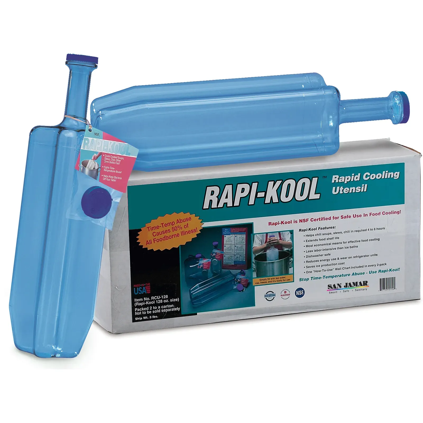 Streamline operations with the San Jamar RCU1282 Chilling Paddle. Designed specifically for commercial restaurant use, this polycarbonate paddle is a must-have tool for any kitchen. With a generous capacity of 128 oz., it allows for quick and efficient cooling of soups, sauces, and other hot liquids, ensuring food safety and reducing the risk of bacterial growth. The Rapi-Kool Cold Paddle is NSF certified, guaranteeing its quality and durability. Its pack of 2 paddles provides convenience and flexibility in busy kitchen environments. Enhance your restaurant's efficiency and food safety protocols with this essential chilling paddle.