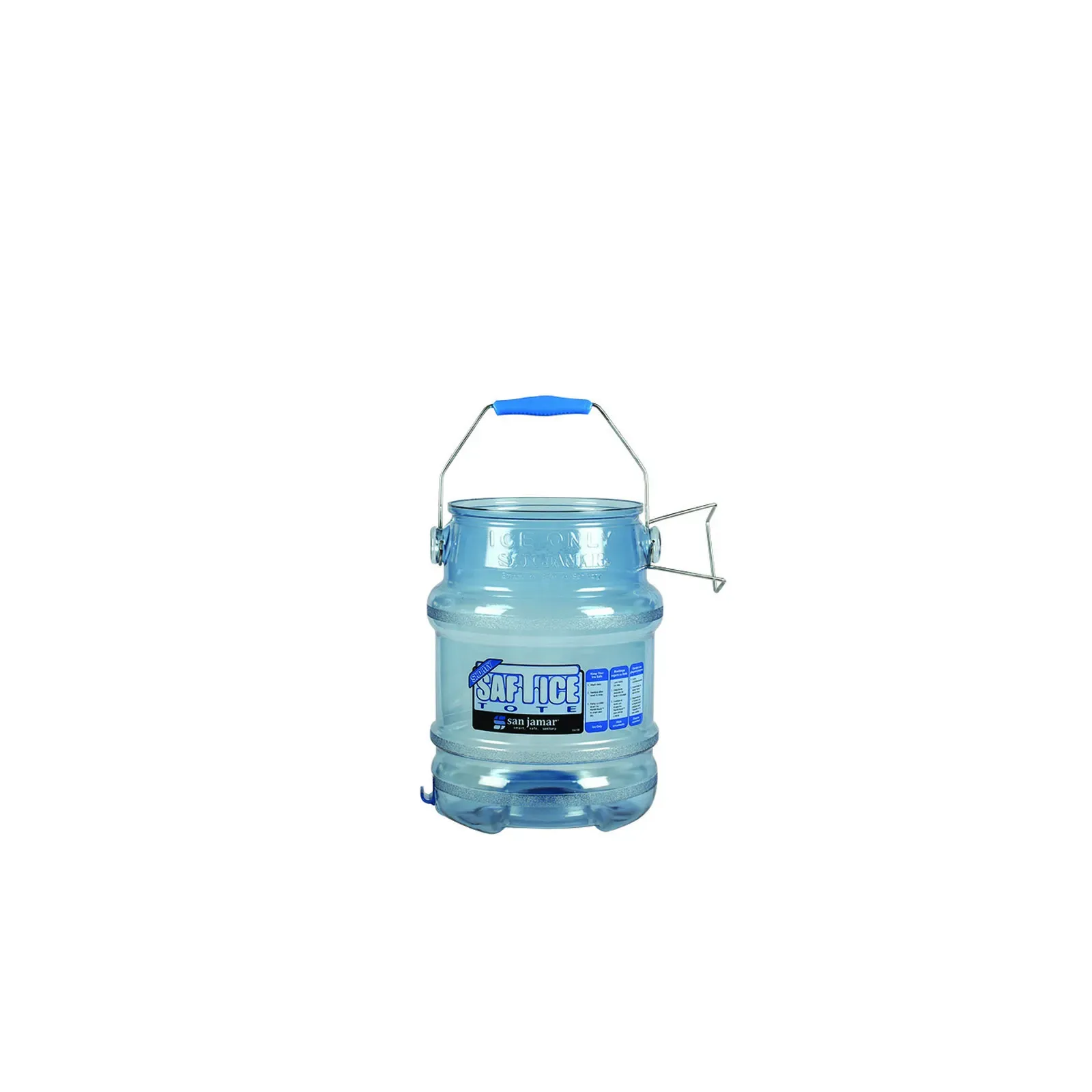 Enhance functionality with the San Jamar SI6100 Ice Tote. Designed for commercial restaurant use, this ice tote is a must-have for any establishment. With a capacity of 5 gallons, it can hold a large amount of ice, ensuring that you never run out during peak hours. The polycarbonate construction is durable and long-lasting, perfect for the demands of a busy kitchen. The rubber handle provides a comfortable grip, making it easy to transport the ice from the freezer to the serving area. The tri-grip feature allows for easy pouring, minimizing the risk of spills and accidents. Plus, the included Saf-T-Ice HACCP hanger elevates the tote to waist level, promoting safe and sanitary handling. NSF certified, this ice tote meets the highest standards of quality and safety. Upgrade your ice handling with the San Jamar SI6100 Ice Tote.