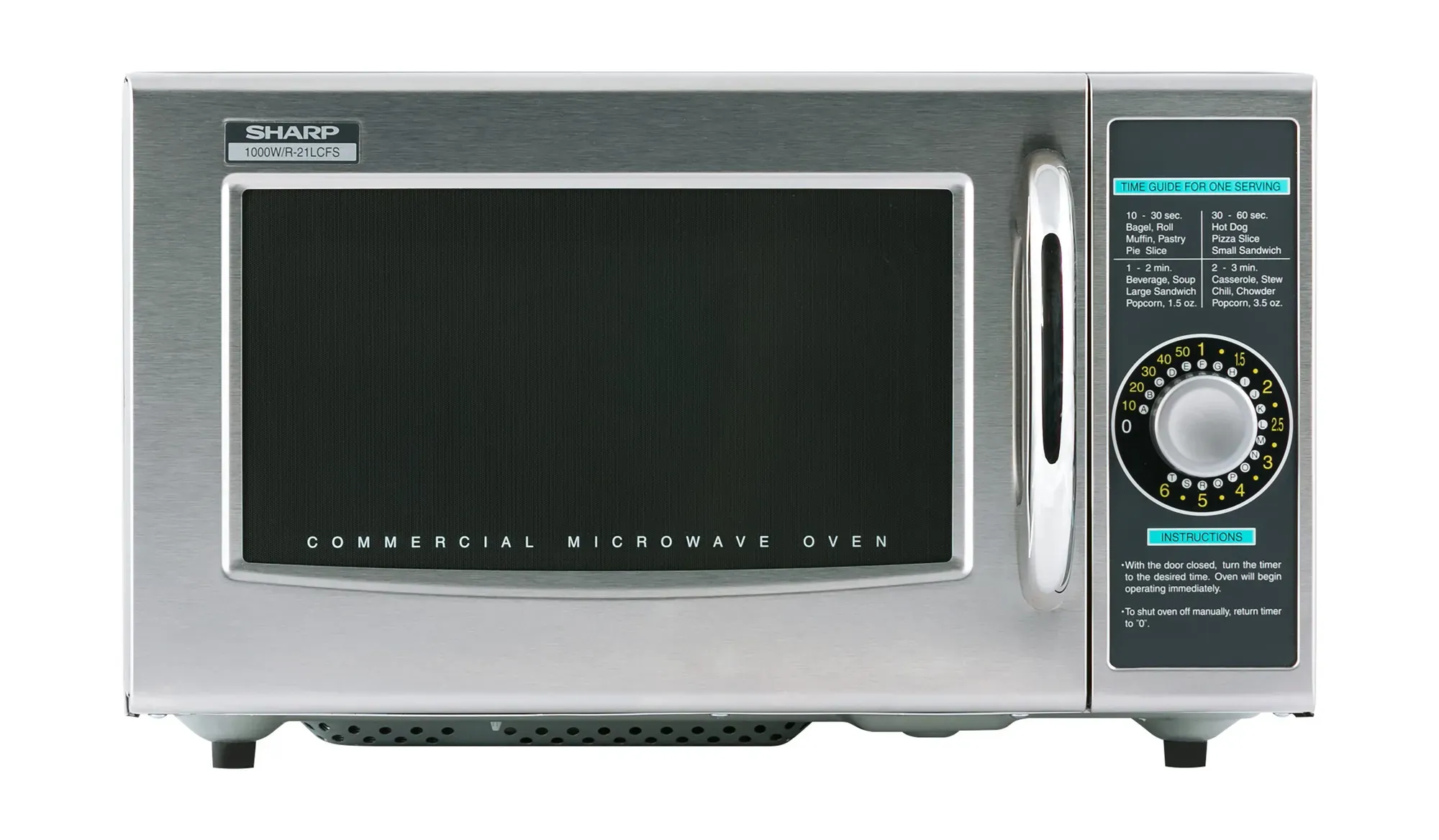 Cooking at its finest with the Sharp R-21LCFS Microwave Oven. This medium-duty microwave oven is a must-have for any commercial restaurant. With its 1000 watts of power and 1.0 cu. ft. capacity, it can handle all your cooking needs. The stainless steel door, cavity, and outer wrapper ensure durability and easy cleaning. The side-hinged see-thru door allows you to monitor your food as it cooks. The manual light-up dial timer with a timer heating-time guide makes it easy to set the perfect cooking time. Plus, the timer resets to 0 when the door is opened during the cooking cycle, ensuring precise cooking every time. With its 120v/60/1-ph, 14 amp power supply, this microwave oven is ready to handle the demands of a busy commercial kitchen. Trust Sharp for all your commercial microwave needs.
