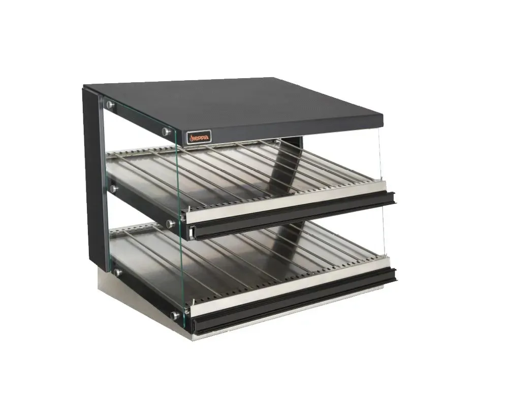 Modernize operations with intelligent choice through the MVP SHDM-32PT Heated Display Merchandiser. This countertop unit is designed to enhance your commercial restaurant's efficiency and presentation. With a pass-through design and adjustable divider rods, you can easily organize and showcase your delectable offerings. The Sierra Heated Display Merchandiser features independent heat and light controls, allowing you to create the perfect ambiance for your products. The temperature range of 86° - 185°F ensures that your food stays at the optimal serving temperature, enticing customers with its freshness. The tempered glass sides provide a clear view of your culinary creations, while the black powder-coated finish adds a touch of elegance to your establishment. With 1800 watts of power, this merchandiser is both reliable and energy-efficient. Trust MVP to deliver a high-quality product that will elevate your restaurant's display and attract customers with its irresistible appeal.