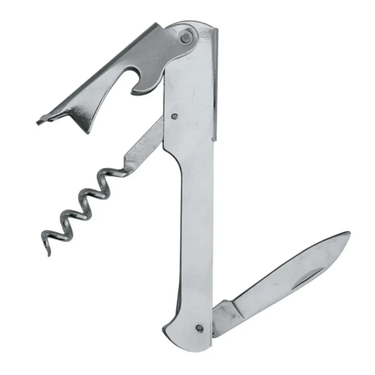 Introducing the Spill-Stop 131-01 Corkscrew, the perfect tool for commercial restaurant use. Ensure durability with this chrome-plated, multi-functional corkscrew. Its straight blade effortlessly opens bottles, while the built-in bottle opener adds convenience. With a compact size of 4-1/4", this waiters corkscrew is easy to carry and store. Whether you're a busy bartender or a professional waiter, this corkscrew is designed to withstand the demands of a commercial kitchen. Its sleek design and reliable functionality make it a must-have tool for any restaurant or bar. Don't settle for anything less than the best. Choose the Spill-Stop 131-01 Corkscrew and elevate your restaurant's service to the next level.
