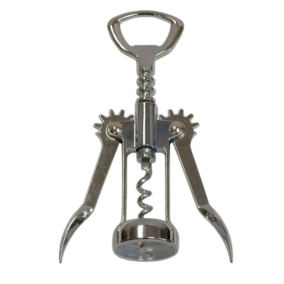 Enhance innovation with the Spill-Stop, 131-02 Corkscrew. This chrome-plated corkscrew is a must-have tool for any commercial restaurant. Its twist-in design and press-down wings make opening wine bottles a breeze, while the built-in bottle opener adds convenience. With a length of 6-5/8 inches, this corkscrew is compact yet sturdy, ensuring durability and ease of use. Its sleek chrome-plated finish adds a touch of elegance to any bar or dining area. Designed by Spill-Stop, a trusted vendor in the industry, this corkscrew guarantees authenticity and reliability. Whether you're a sommelier or a bartender, the Spill-Stop, 131-02 Corkscrew is the ideal tool for effortlessly opening bottles and enhancing the dining experience in your commercial restaurant.