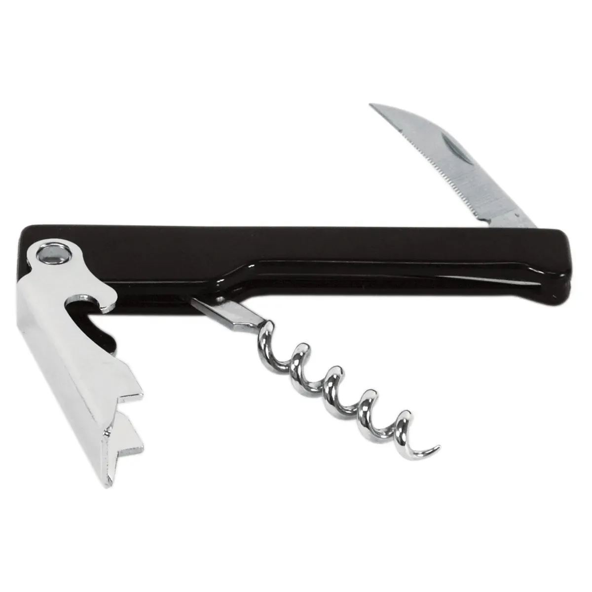 Enhance quality with the Spill-Stop, 131-03 Corkscrew. This multi-functional tool is a must-have for any commercial restaurant. With its sleek chrome-plated design and black plastic handle, it not only looks professional but also provides durability and ease of use. The waiters cork screw features a built-in knife and bottle opener, making it a versatile tool for opening wine bottles and other beverages. Whether you're a busy restaurant or a catering service, this corkscrew is designed to withstand the demands of a commercial kitchen. Its compact size of 4-3/8" allows for easy storage and portability. Trust Spill-Stop, a reputable vendor in the industry, to deliver a high-quality corkscrew that will enhance your restaurant's efficiency and professionalism.