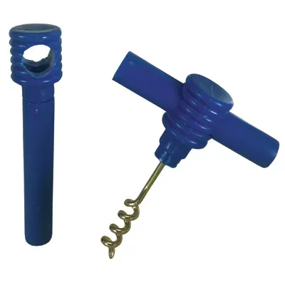 Enhance innovation with the Spill-Stop, 132-05 Corkscrew. This pocket-sized tool is a must-have for any commercial restaurant. With its compact design and wire worm, it effortlessly removes corks from bottles, ensuring a smooth and efficient service. The corkscrew is disassemblable, making it easy to clean and maintain, while the blue plastic handle provides a comfortable grip for the user. Whether you're a busy bar or an upscale restaurant, this Spill-Stop corkscrew is the perfect addition to your toolkit. Its durability and functionality make it a reliable choice for opening bottles with ease. Don't let a stubborn cork slow you down - invest in the Spill-Stop, 132-05 Corkscrew and elevate your restaurant's service to new heights.