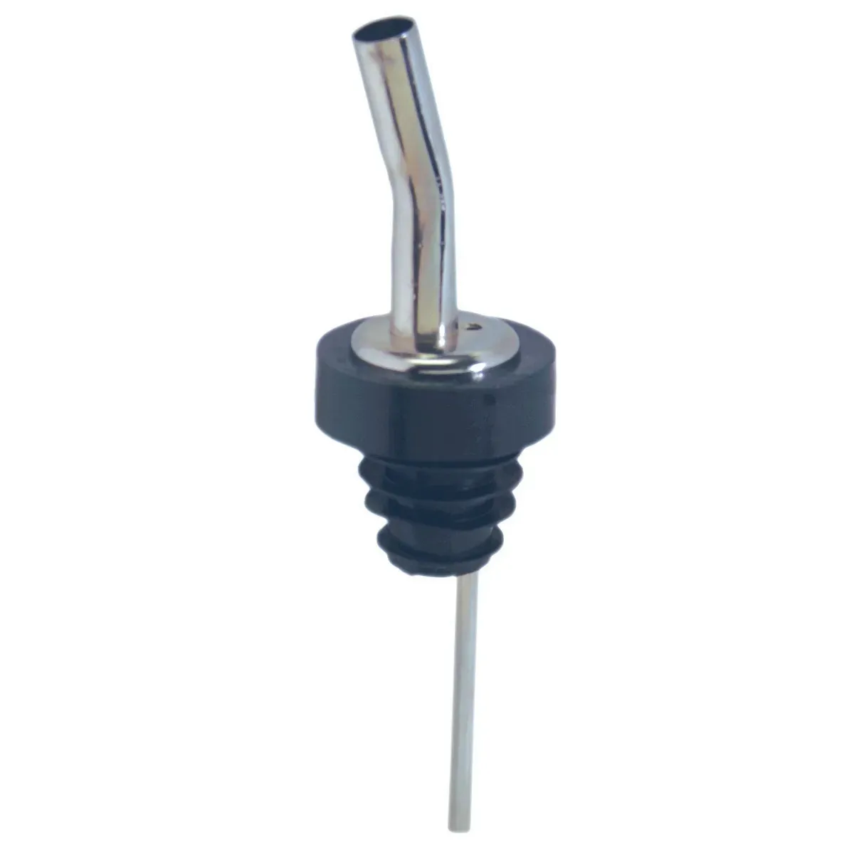 Streamline workflow with the Spill-Stop, 220-51 Liquor Pourer. Designed for commercial restaurant use, this chrome pourer is a must-have tool for bartenders and mixologists. The Spill-Stop Jet Por with Poly-Kork and black collar ensures excellent control when pouring large drinks, minimizing spills and waste. Made in the USA, this pourer is crafted with quality and durability in mind. With its sleek design and reliable performance, the Spill-Stop, 220-51 Liquor Pourer is an essential addition to any bar or restaurant. Enhance your beverage service and impress your customers with precise and efficient pouring. Whether you're serving up cocktails, spirits, or mixers, this pourer will help you maintain consistency and speed, making it an invaluable tool for any commercial establishment.